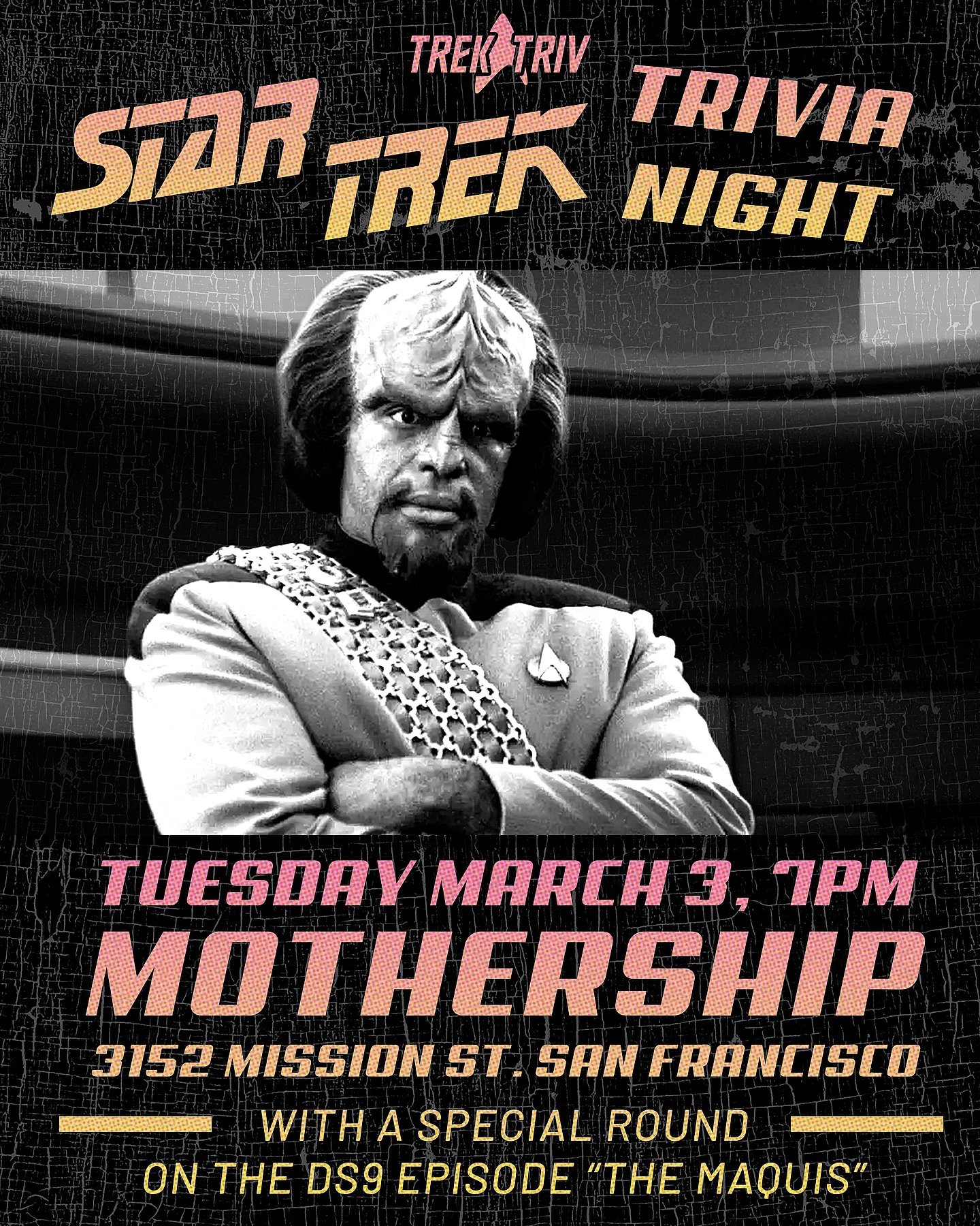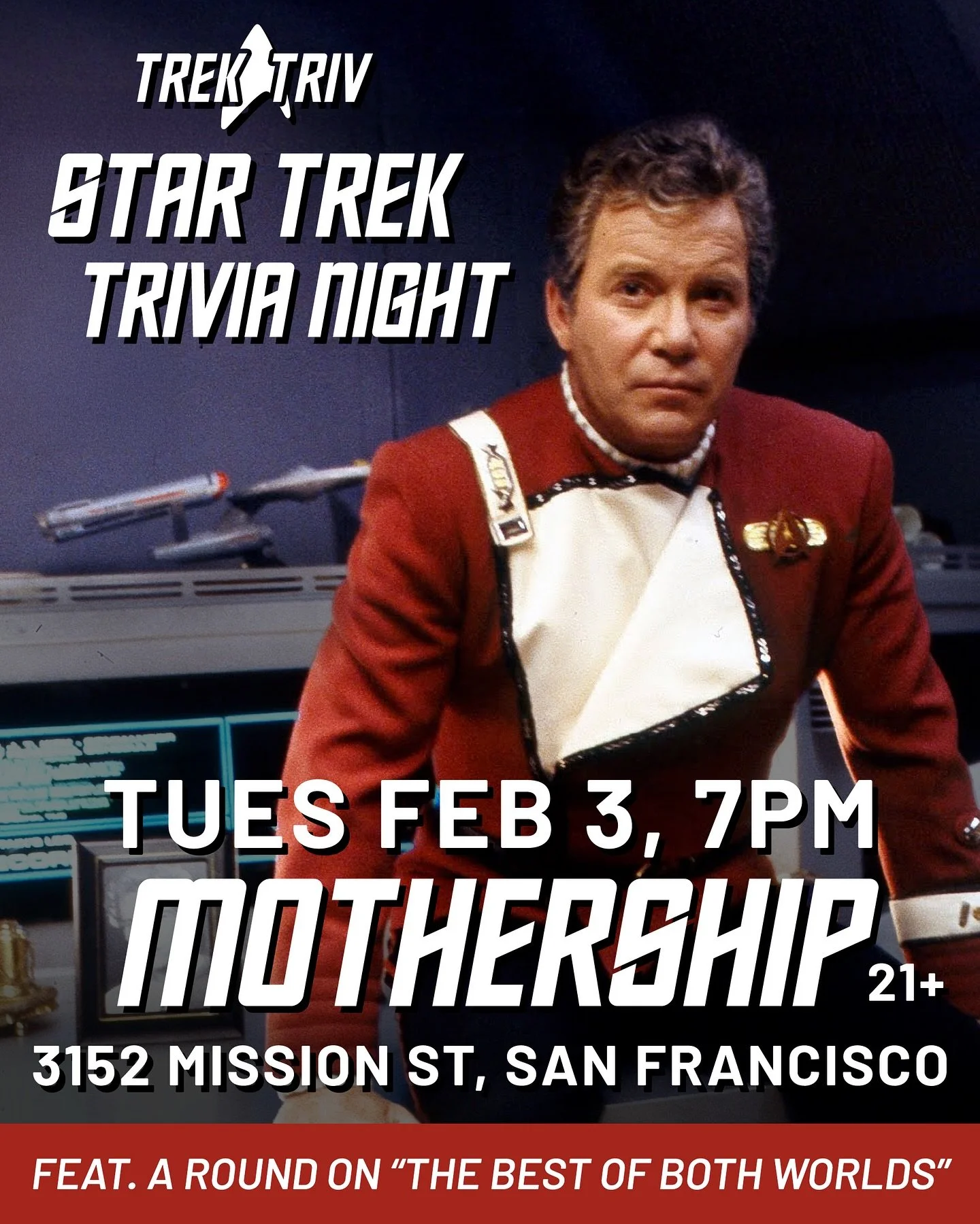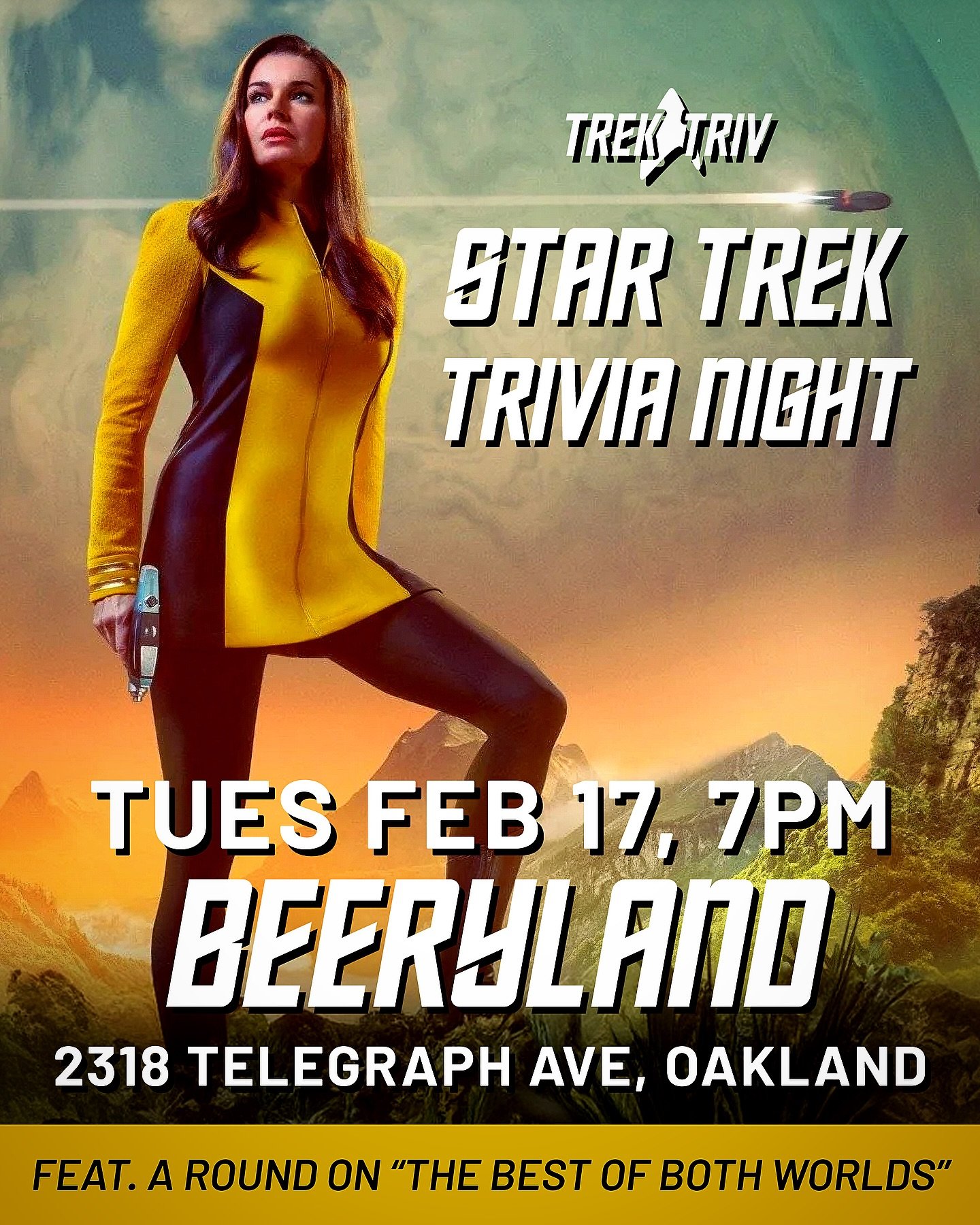 Don your Starfleet uniform, assemble your away team, and test your Trek knowledge to win merch, drinks, and the highly-coveted Trek Triv prize pips.
