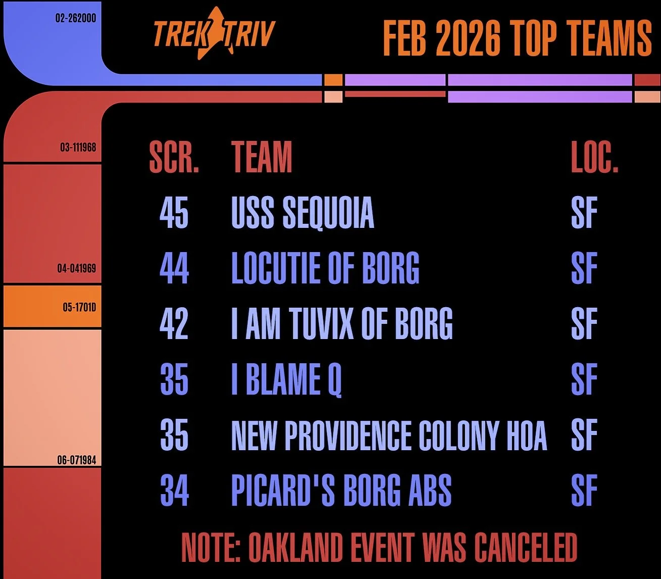 Star trek trivia Events in the s.f. bay area